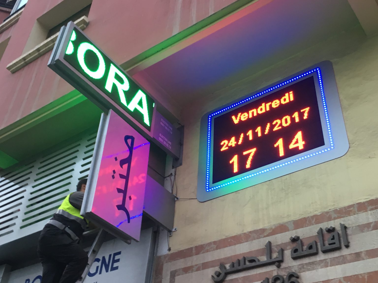 Un afficheur à LED est un type d’écran numérique qui utilise des diodes électroluminescentes (LED) pour afficher des messages, des images, des vidéos et d’autres types de contenu visuel. Les afficheurs à LED peuvent être utilisés pour une variété d’applications, y compris la publicité extérieure, les panneaux d’affichage numériques, les affichages d’information, les panneaux de score sportif, les horloges numériques, les tableaux de bord électroniques et bien plus encore.